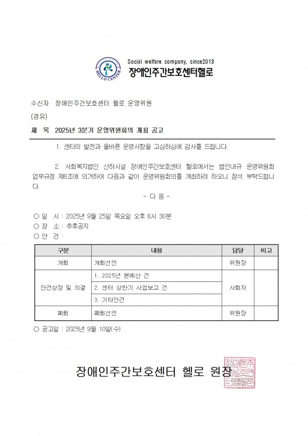 2025년 3분기 운영위원회의 개최 공고 페이지 정보 작성자 누리봄 쪽지보내기 메일보내기 자기소개 아이디로 검색 전체게시물 쪽지보내기 메일보내기 자기소개 아이디로 검색 전체게시물 작성일25-09-23 13:45 조회48회 댓글0건 이전글 다음글 목록 본문 2025년 3분기 운영위원회의 개최 공고 댓글목록 등록된 댓글이 없습니다. 이전글 다음글 목록