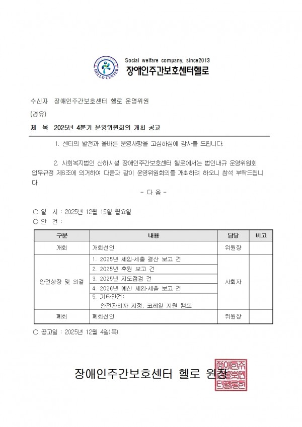 2025년 4분기 운영위원회의 개최 공고 페이지 정보 작성자 누리봄 쪽지보내기 메일보내기 자기소개 아이디로 검색 전체게시물 쪽지보내기 메일보내기 자기소개 아이디로 검색 전체게시물 작성일25-12-04 15:23 조회2회 댓글0건 다음글 목록 본문 2025년 4분기 운영위원회의 개최 공고 댓글목록 등록된 댓글이 없습니다. 다음글 목록